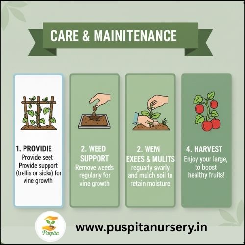 Apply organic fertilizer every 20–25 days for strong vine growth.