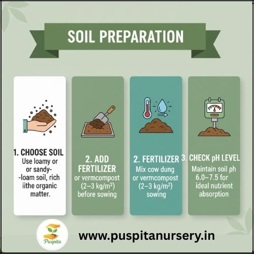 Mix cow dung or vermicompost (2–3 kg/m²) before sowing.