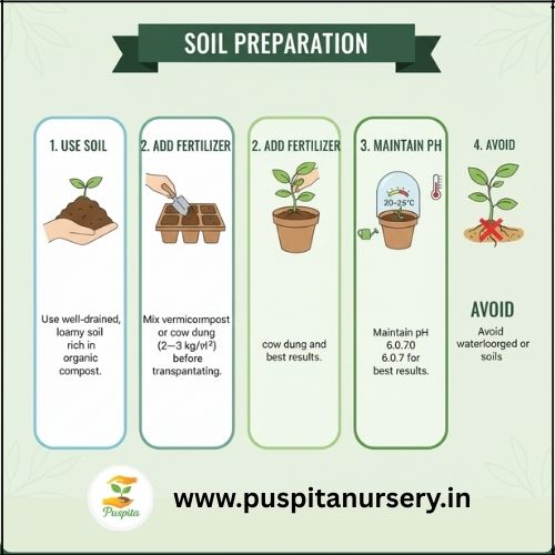 Mix vermicompost or cow dung (2–3 kg/m²) before transplanting.