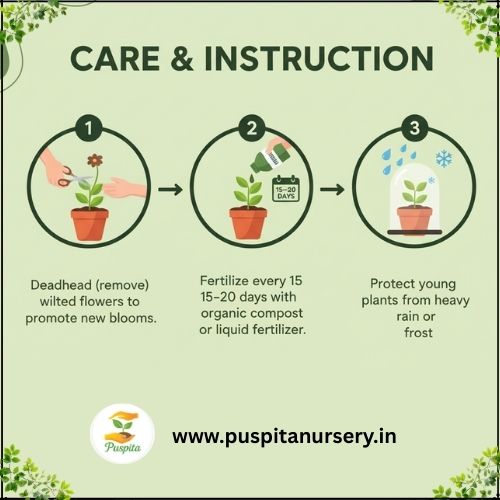 Fertilize every 15–20 days with organic compost or liquid fertilizer.