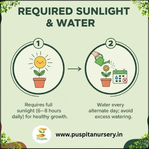 Requires full sunlight (6–8 hours daily) for healthy growth.