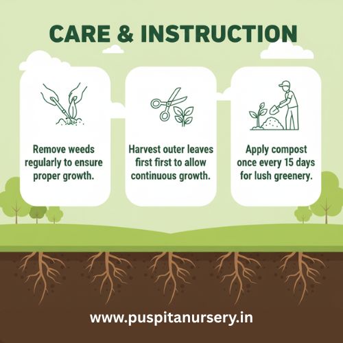 .Fast-Growing & Early Harvest: Ready to harvest within 30–40 days after sowing. Continuous leaf picking possible.